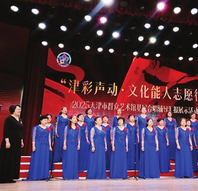 本报讯(记者刘桂芳摄影曹彤)“津彩声动·文化能人志愿行”——2025天津市群众艺术馆基层合唱辅导汇报展示活动,昨日在天津群星剧院举行。6支受辅导的社区合唱团登台亮相,以一场高水平的示范展演,呈现了今年以来天津市群众艺术馆开展公益合唱辅导的丰硕成果。